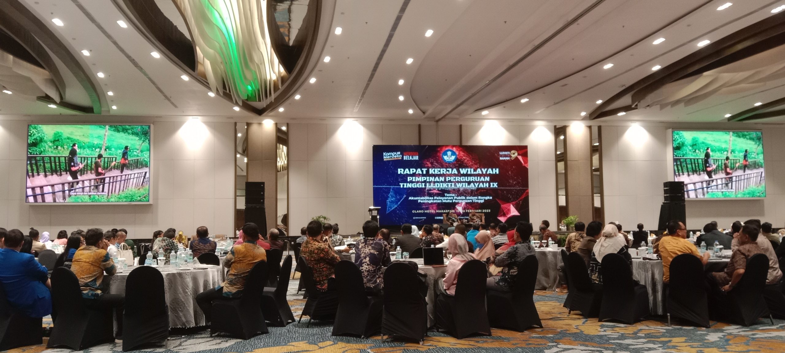 MAKASSAR — Rapat kerja Wilayah Pimpinan Perguruan Tinggi Lingkup LLDIKTI Wilayah IX dengan tema Akuntabilitas Pelayanan Publik dalam Rangka Peningkatan Mutu Perguruan Tinggi, digelar di Ballroom Hotel Claro, Jl AP. Pettarani, Kota Makassar, Rabu 15 Februari 2023.