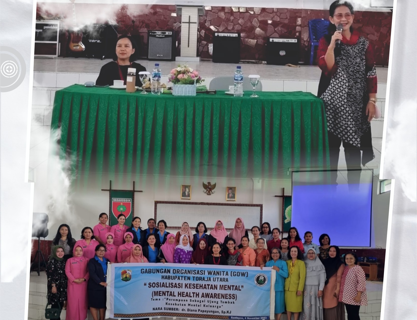 MM, TORUT — GOW (Gabungan Organisasi Wanita) Kabupaten Toraja Utara menyelenggarakan Sosialisasi Kesehatan Mental (Mental Health Awareness) dengan tema “Perempuan sebagai Ujung Tombak Kesehatan Mental Keluarga” yang berlangsung di Aula Kodim 1414 Tana Toraja, Sabtu, (4/11/2023).