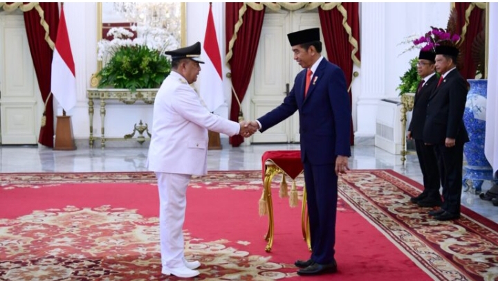 MM,JAKARTA — Presiden Joko Widodo secara resmi melantik Brigjen TNI (Purn) Edy Nasution sebagai Gubernur Riau Sisa Masa Jabatan Tahun 2019-2024. Acara pelantikan digelar di Istana Negara, Jakarta, pada Senin, 27 November 2023.