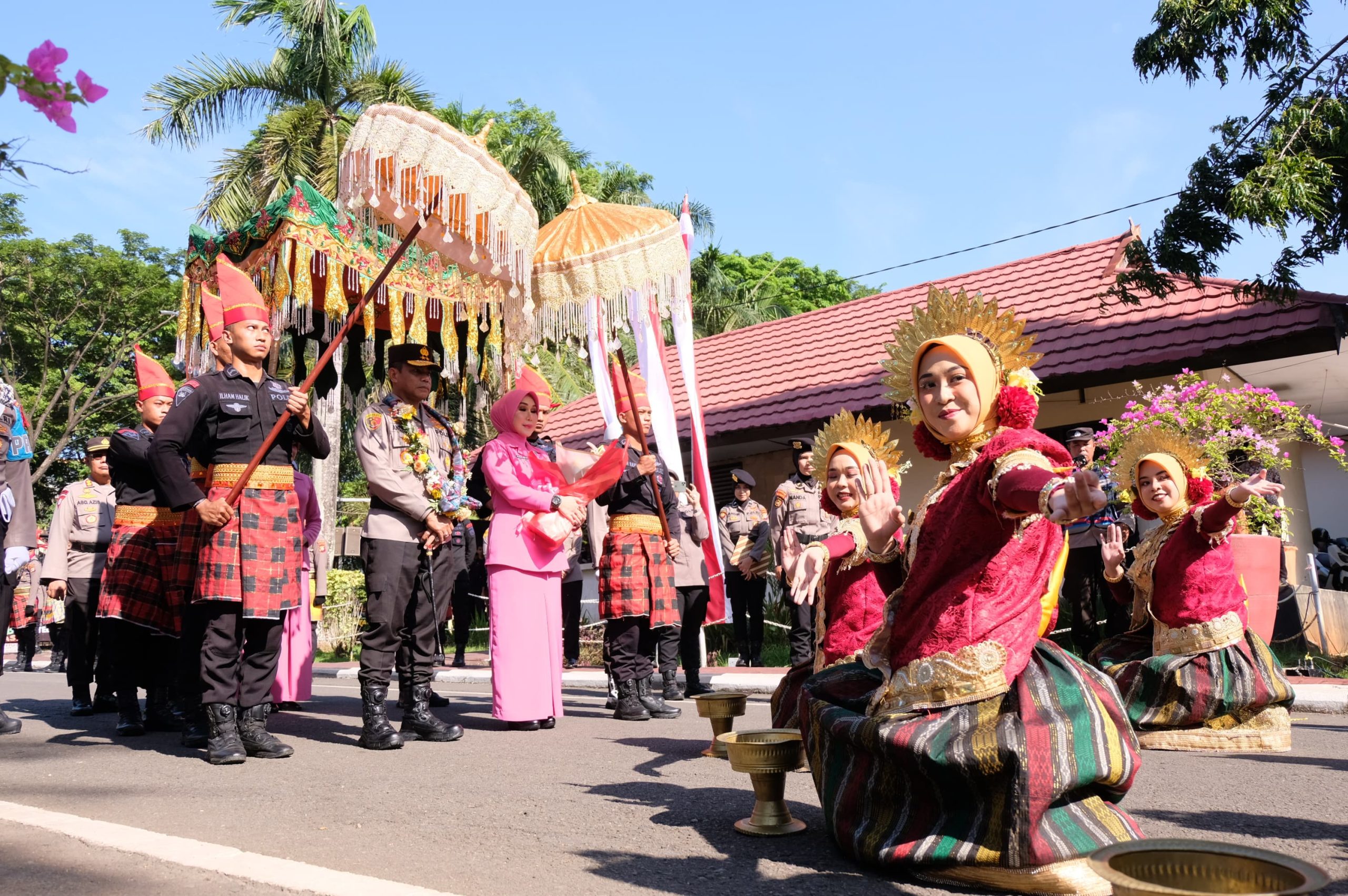 Kapolda Sulsel Irjen Pol Andi Rian R. DJajadi beserta istri kemudian menyapa jajaran personil Polda Sulsel yang berdiri berjejer menyambutnya.