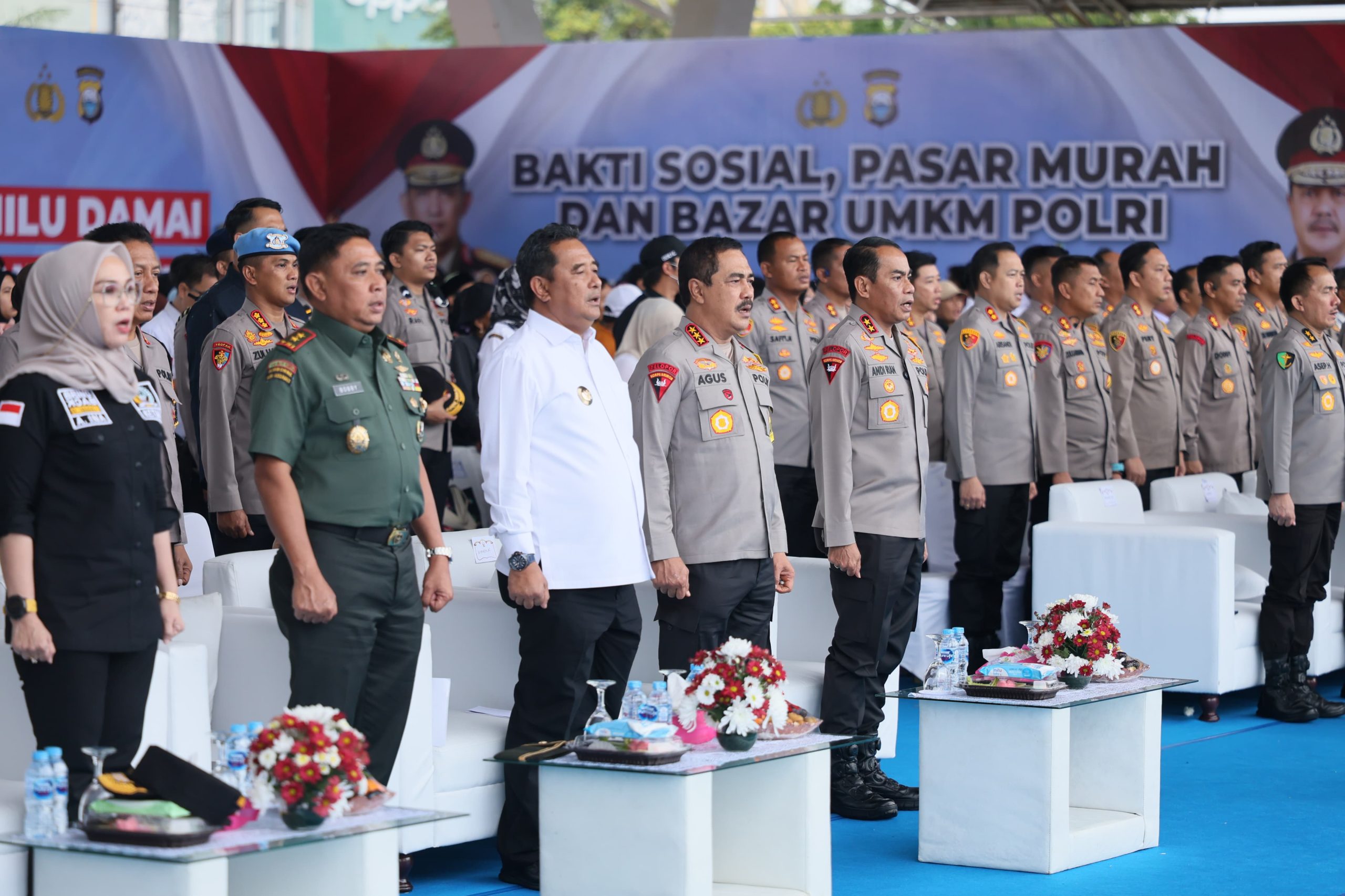 MAKASSAR, MM — Polri Mengadakan Kegiatan Bakti Sosial, Pasar Murah dan Bazar UMKM di Lapangan Karebosi Makassar Pada Rabu (07/02/2024).