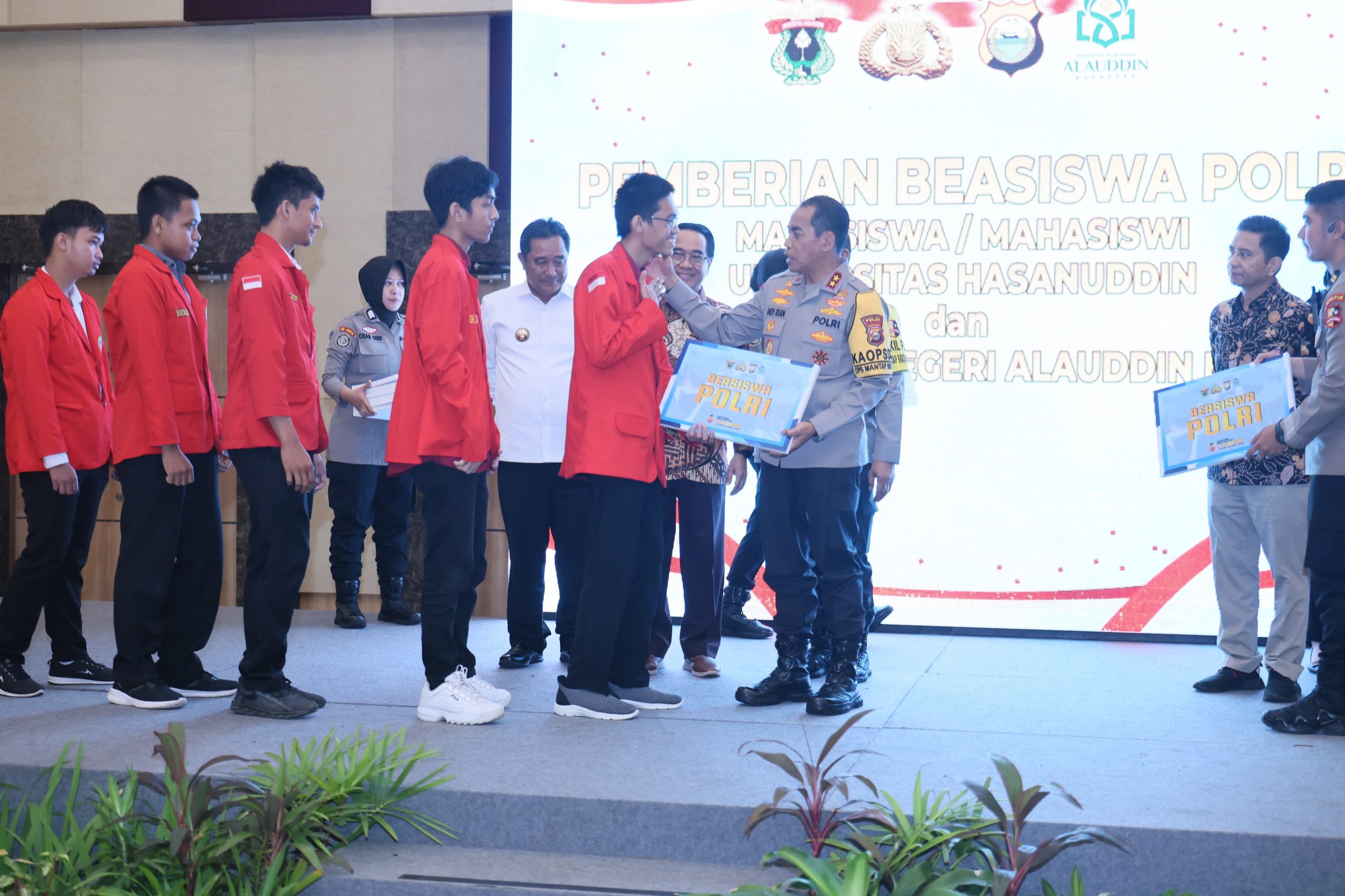 Beasiswa tersebut di serahkan Langsung Oleh Wakapolri Komjen. Pol. Drs. Agus Adrianto , S.H., M.H, dan Kapolda Sulsel Irjen Pol Andi Rian R Djajadi S.I.K, M.Si. kepada Mahasiswa/i Unhas Dan UIN Alauddin Makassar.
