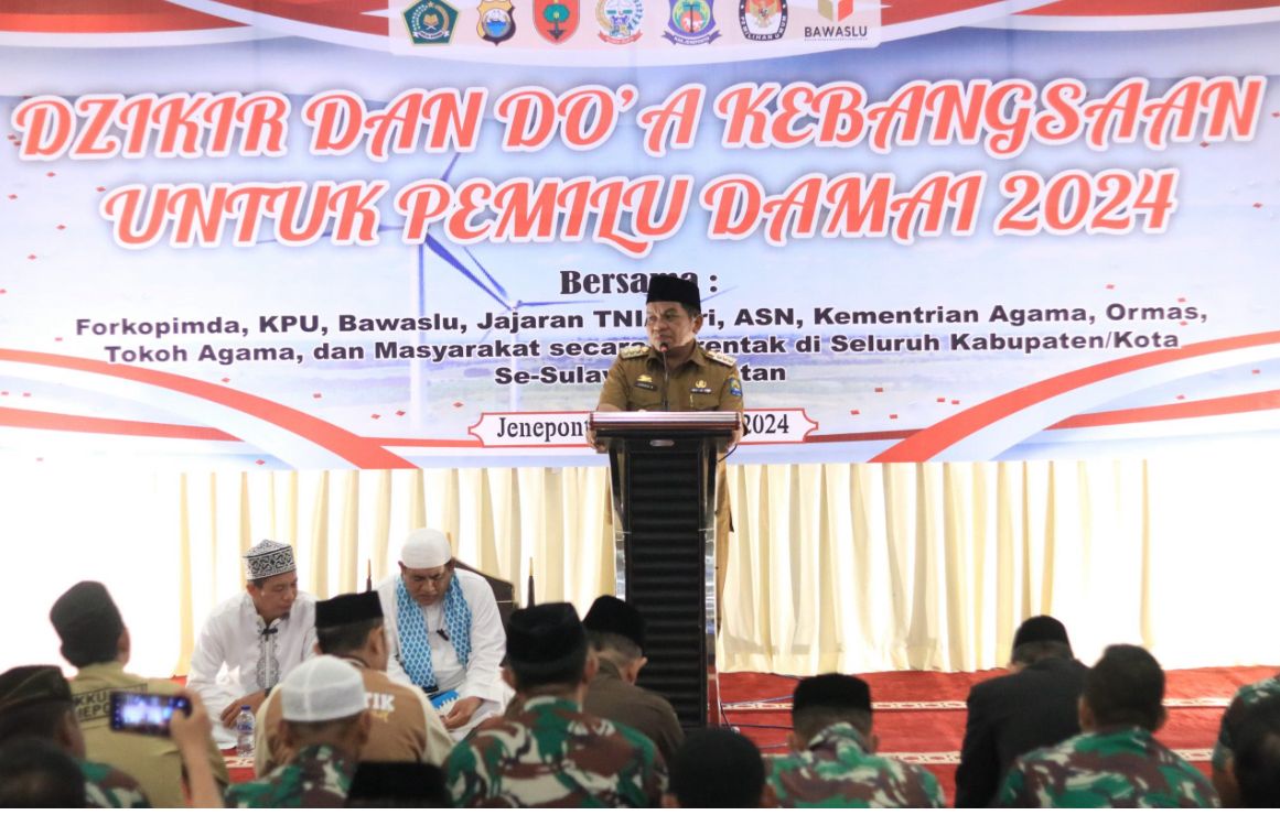 JENEPONTO, MM | Momen Haru Pj. Bupati Junaedi B. saat menghadiri acara dzikir dan doa kebangsaan di Masjid Agung Binamu. Senin. (12/02/2024).