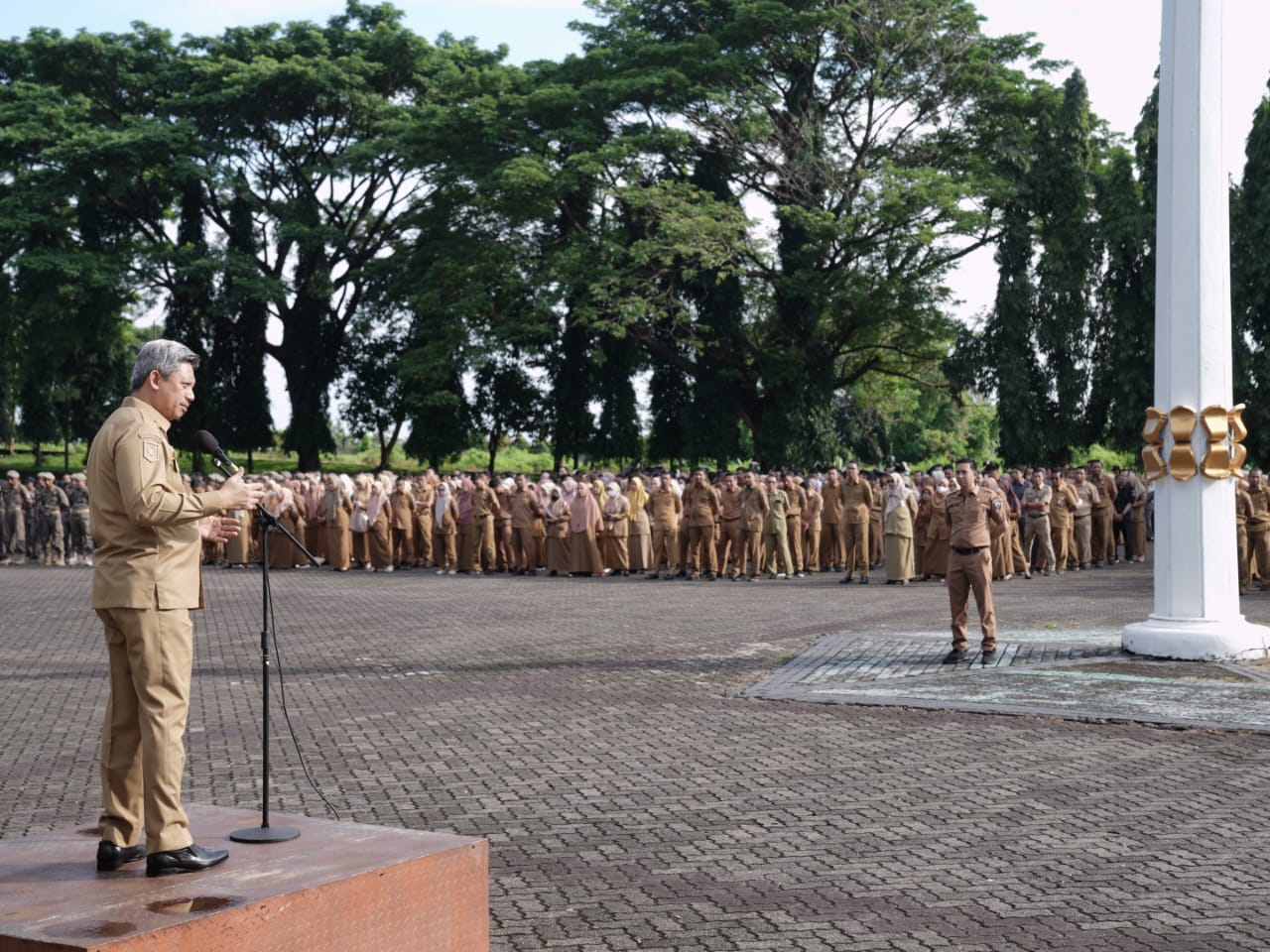 MAKASSAR, MM | Penjabat Sekertaris Daerah Provinsi Sulawesi Selatan Andi Muhammad Arsjad menjadi Inspektur Upacara dalam Apel Pagi perdana pasca cuti bersama memperingati Hari Raya Idulfitri 1445 Hijriah, di Lapangan Upacara Kantor Gubernur Sulsel, Selasa, 16 April 2024.