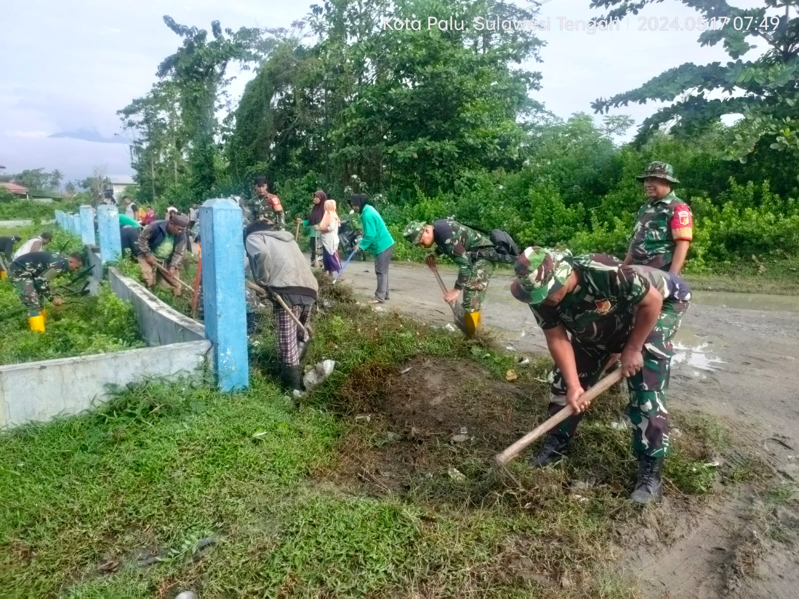 PALU, MM | Koramil 1306-16/PS melaksanakan kegiatan Karya Bakti bersama Tripika Wilayah Palu Selatan Kota Palu di Lingkungan Pasar Bulili Kelurahan Petobo, Jum’at 17 Mei 2024. Kegiatan tersebut melibatkan sedikitnya puluhan orang.