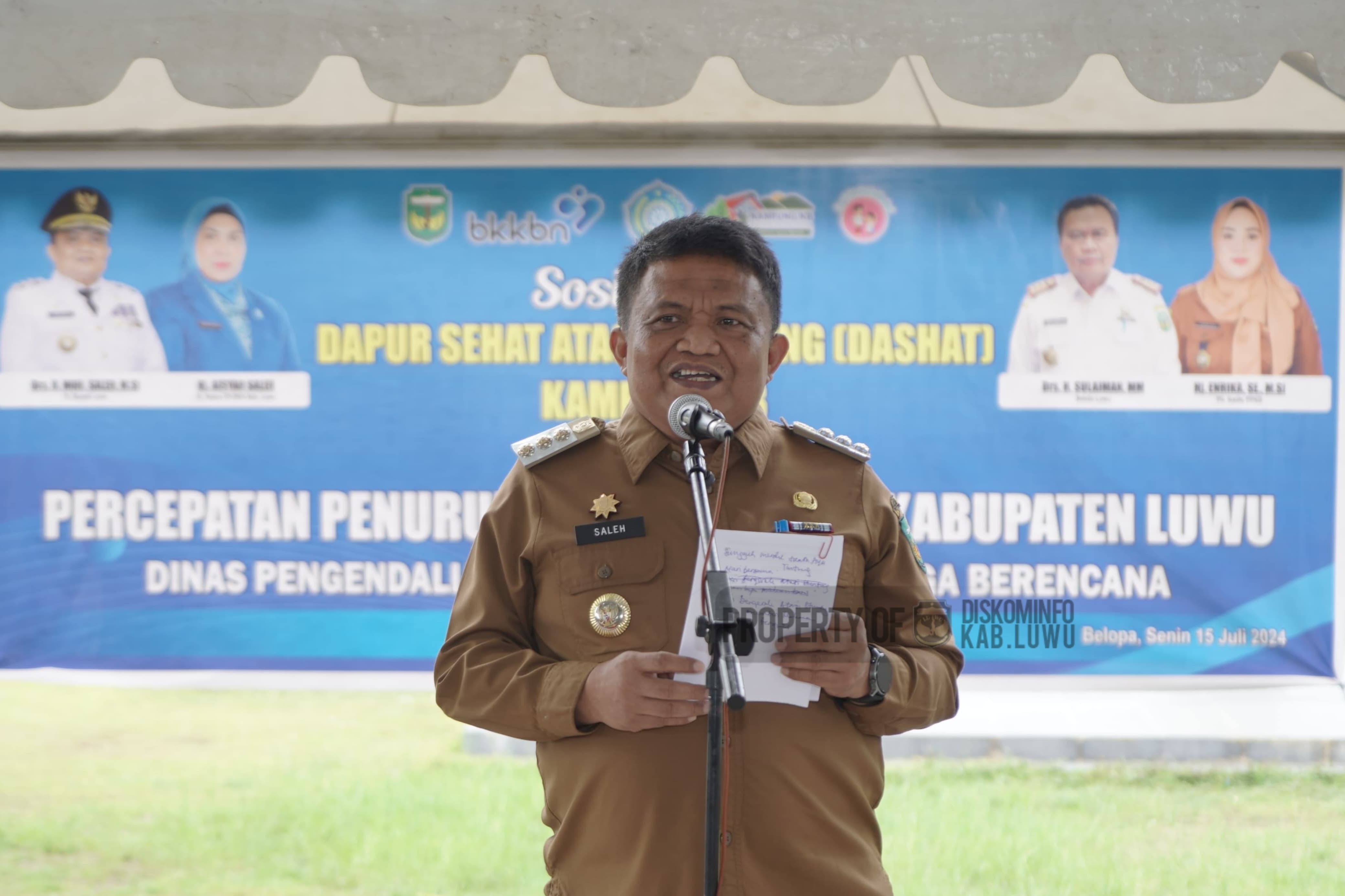 Hal ini disampaikan Pj. Bupati Luwu pada acara pembukaan Sosialisasi Dapur Sehat Atasi Stunting (Dashat) Kampung KB dalam rangka Percepatan Penurunan Stunting yang diselenggarakan oleh Dinas Pengendalian Penduduk dan Keluarga Berencana yang dipusatkan di Tribun Lapangan Andi Djemma Belopa, Senin (15/7/2024).