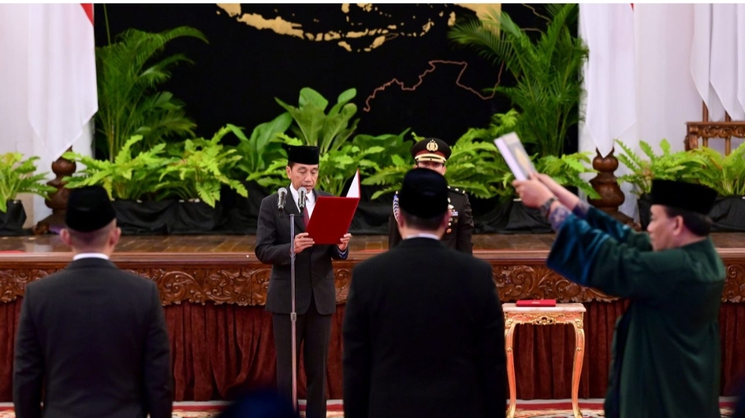 Presiden Jokowi pun mengambil sumpah jabatan para pejabat yang dilantik.