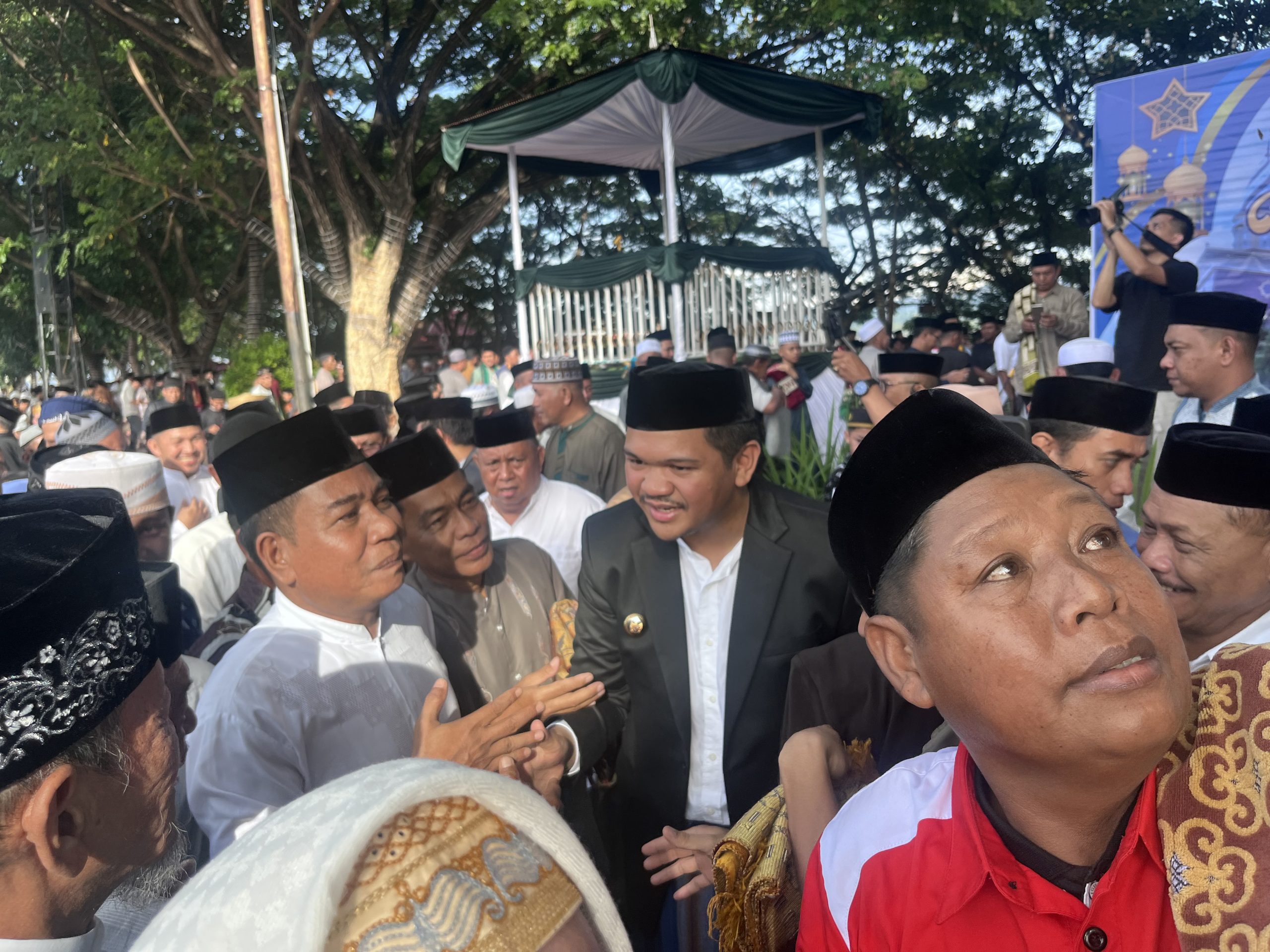 Pelaksanaan Sholat Id itu dihadiri langsung Bupati terpilih yakni Fathul Fauzy Nurdin